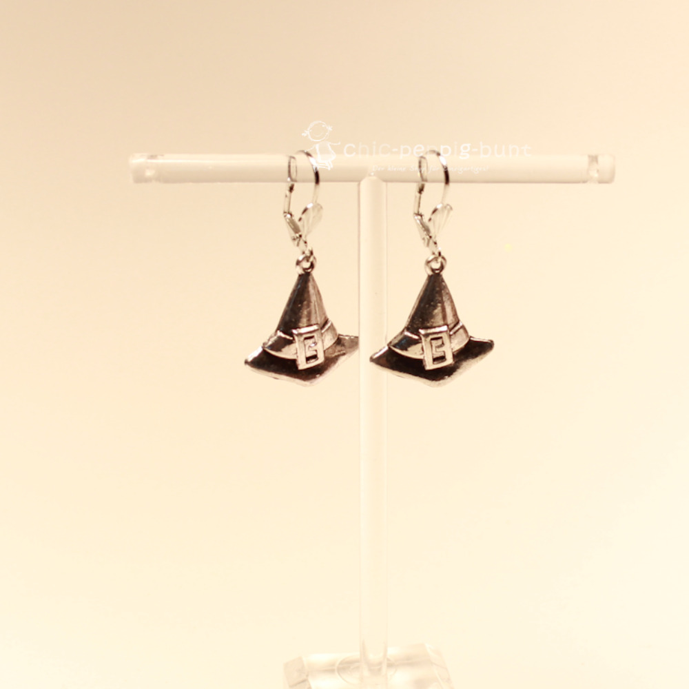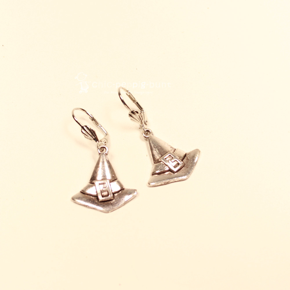 Suchst du nach einem Accessoire, das deine mystische Seite so richtig zur Geltung bringt? Wir präsentieren dir Ohrringe, die garantiert jeden Zauberkessel vor Neid erblassen lassen! In unserer Kreativwerkstatt fertigen wir unter dem Label chic-peppig-bunt jedes Paar in liebevoller Handarbeit an. Diese versilberten Hänger zeigen einen klassischen, spitzen Hexenhut in einer stattlichen Größe, der nur darauf wartet, mit dir die Nacht unsicher zu machen.