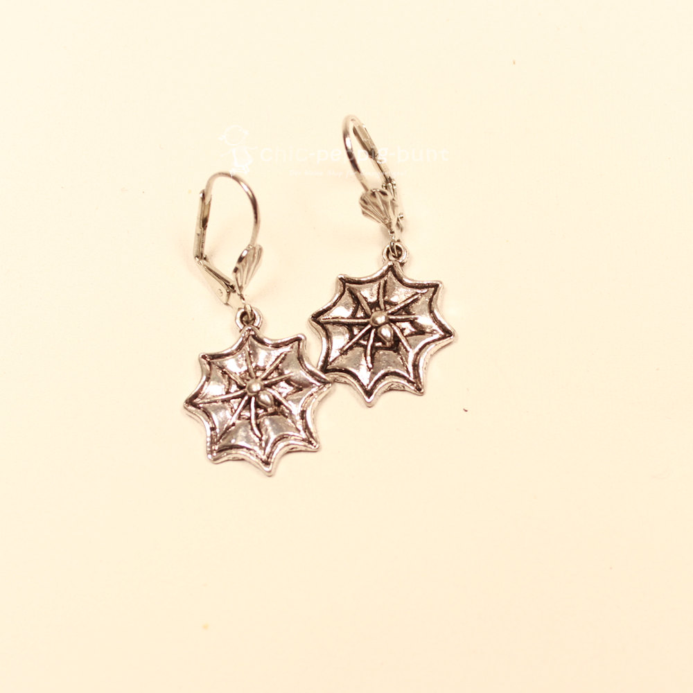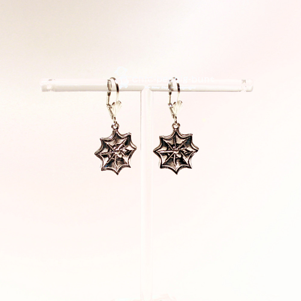Suchst du nach einem Accessoire, das dein Outfit perfekt abrundet, ohne dass du direkt eine Phobie auslöst? Wir präsentieren dir Ohrringe, in denen sich jeder Blick verfängt! In unserer Kreativwerkstatt fertigen wir unter dem Label chic-peppig-bunt jedes Paar in liebevoller Handarbeit an. Diese versilberten Hänger zeigen ein kunstvoll gewebtes Spinnennetz, das nur darauf wartet, mit dir die nächste Party unsicher zu machen.