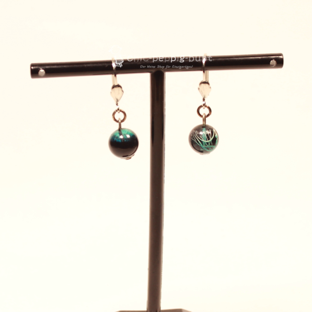 Das Herzstück dieses Schmuckstücks bildet die kunstvoll marmorierte Perle. Die Hauptfarbe Schwarz verschmilzt hierbei mit feinen blauen Nuancen zu einem faszinierenden Muster. Durch diese spezielle Marmorierung gleicht keine Perle exakt der anderen, was dir ein echtes Einzelstück für deine Sammlung garantiert. Die glatten Oberflächen fangen das Licht bei jeder deiner Bewegungen ein und verleihen dem Schmuck eine luxuriöse Optik. Wir fertigen jedes Paar mit größter Sorgfalt in unserer Werkstatt unter dem Label „chic-peppig-bunt“ an. Bei uns kaufst du kein namenloses Industrieprodukt, sondern echte Handarbeit, die wir mit viel Herzblut für dich umsetzen.