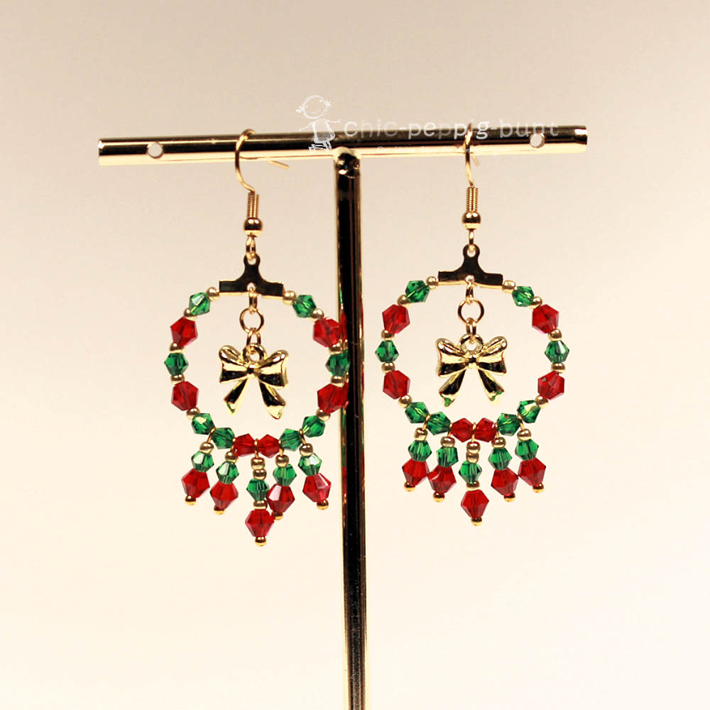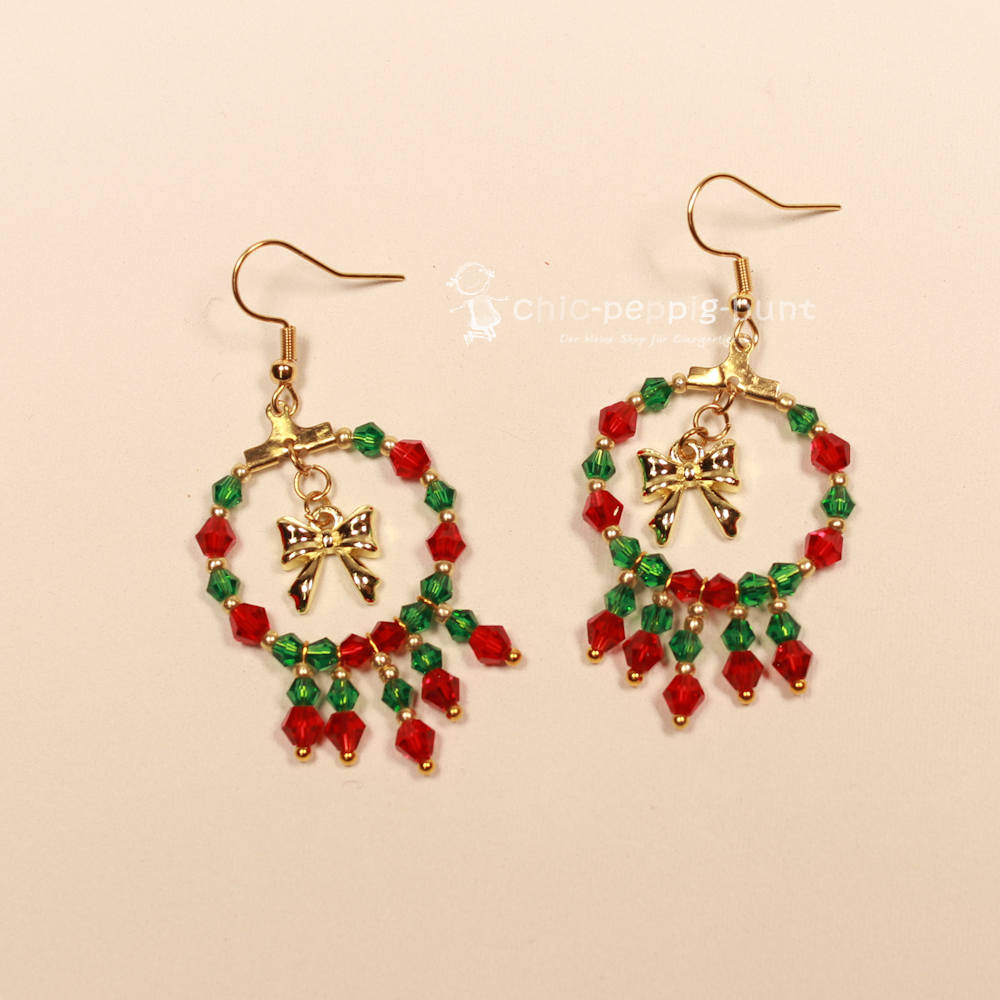 Jeder Mini-Kranz wurde in präziser, liebevoller Handarbeit (handmade by chic-peppig-bunt) geschaffen. Die filigranen Perlen werden sorgfältig aufgefädelt, um die üppige Form eines traditionellen Weihnachten-Kranzes nachzuahmen. Die integrierte Schleife gibt dem Design eine verspielte Note. Dieses handmade Produkt sichert Ihnen ein Unikat, das nicht jeder trägt.