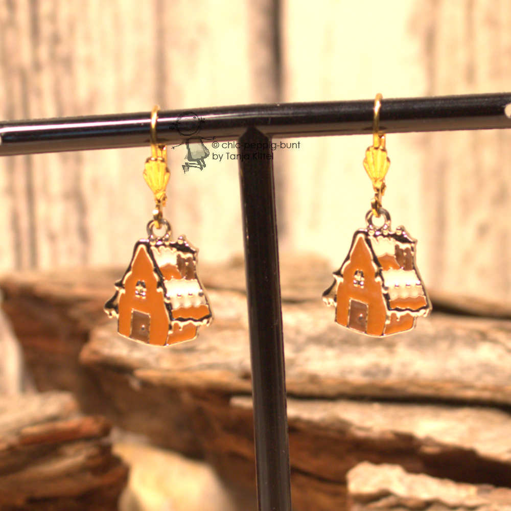 Ein Zuhause zum Verlieben: Vergoldet Lebkuchenhaus-Ohrringe