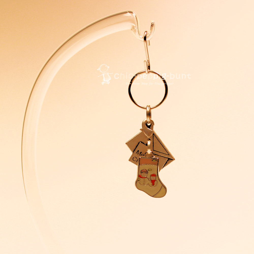 Wir legen großen Wert auf Detailreichtum und erstklassige Verarbeitung. Jeder Schlüsselanhänger wurde in sorgfältiger Handarbeit (handmade durch chic-peppig-bunt) gefertigt. Diese Präzision sehen Sie in der feinen Konturierung des Briefs und der Socke. Die Versilberung garantiert Ihnen zudem ein langlebiges und robustes Modeschmuck-Stück, das Ihre Schlüssel sicher hält. Der Anhänger besitzt eine leichte Tiefe von 0,5 cm, was ihm eine angenehme Haptik gibt. Wir statteten den Taschenbaumler mit einem stabilen Schlüsselring aus, der ein schnelles und sicheres Befestigen an Taschen oder Schlüsseln ermöglicht.