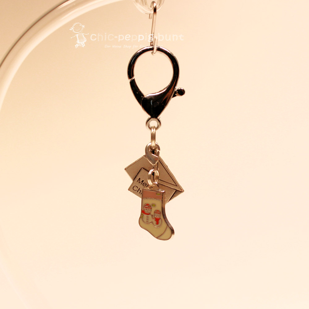Wir legen größten Wert auf Detailreichtum und erstklassige Verarbeitung. Jeder Schlüsselanhänger wurde in sorgfältiger Handarbeit (handmade durch chic-peppig-bunt) gefertigt. Diese Präzision sehen Sie in der feinen Konturierung des Briefs und der Socke. Die Versilberung garantiert Ihnen zudem ein langlebiges und robustes Modeschmuck-Stück, das Ihre Schlüssel sicher hält. Der Anhänger besitzt eine leichte Tiefe von 0,5 cm, was ihm eine angenehme 3D-Haptik gibt. Wir statteten den Taschenbaumler mit einem stabilen Schlüsselring aus, der ein schnelles und sicheres Befestigen an Taschen oder Jacken-Reißverschlüssen ermöglicht.