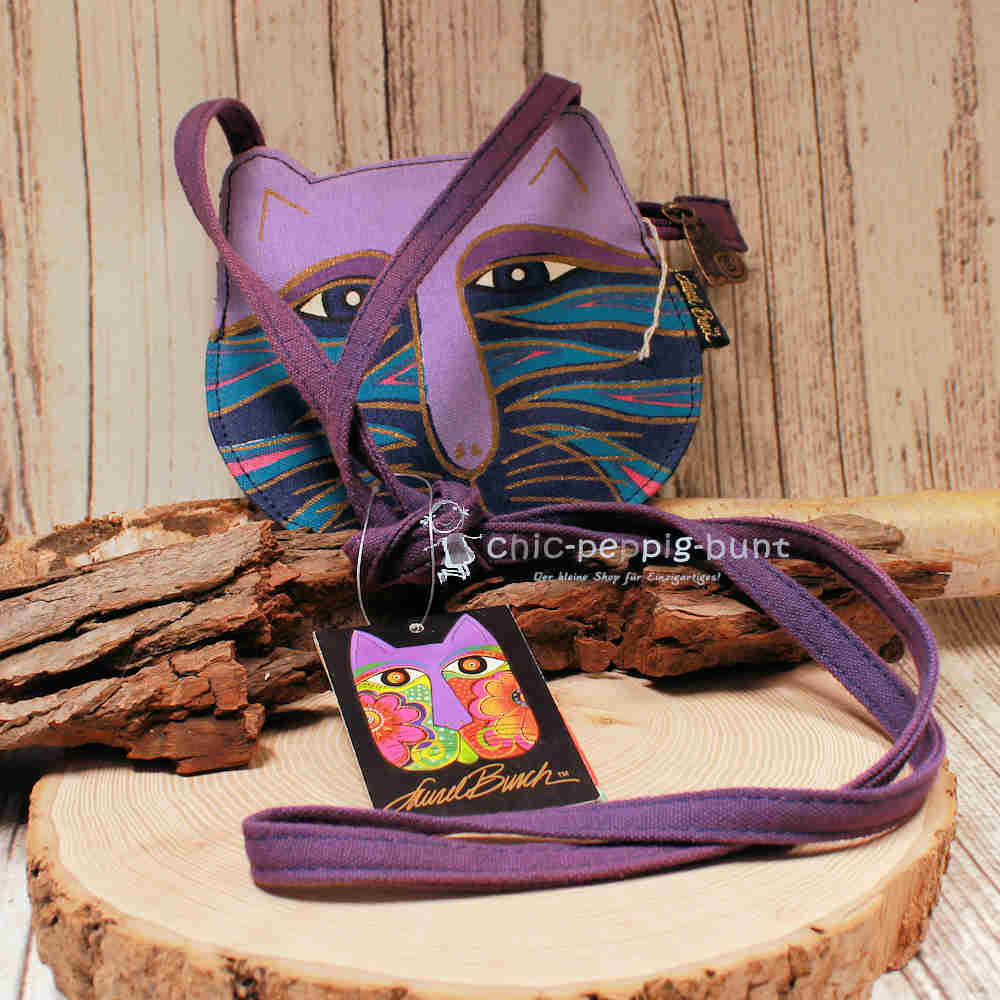 Hast du genug von langweiligen Taschen, die alle gleich aussehen? Unsere lila Umhängetasche in Form eines Katzenkopfes bricht mit allen Konventionen! Die berühmte Designerin Laurel Burch entwarf dieses Schmuckstück, das nicht nur ein Accessoire, sondern ein echtes Kunstwerk ist. Als absolutes Unikat ziehst du mit dieser Damentasche garantiert alle Blicke auf dich – egal ob im Supermarkt oder auf der Vernissage. Der weiche Stoff schmiegt sich angenehm an, während das markante Katzen-Design deinem Outfit eine witzige und zugleich künstlerische Note verleiht.
