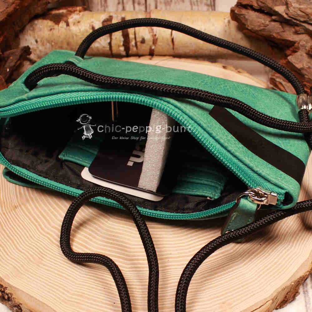- ein grosses Fach, 4 Kartenfächer, 1 kleines Fach mit Reissverschluss